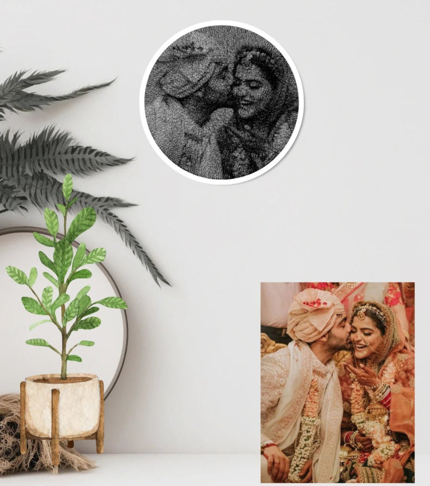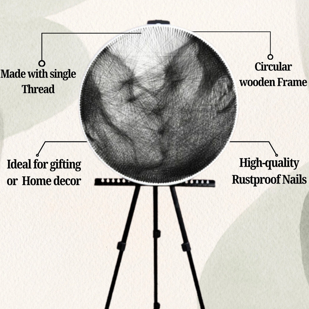 A beautifully handcrafted round string art portrait capturing a heartfelt moment between a couple. Made with precision using hundreds of black threads on a circular frame, this custom piece blends art and emotion β€” perfect for anniversaries, weddings, romantic gifts or birthday gifts.