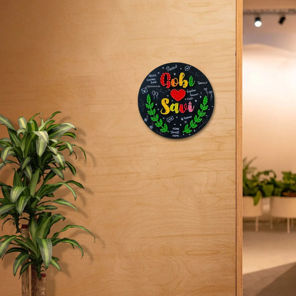 Celebrate your love story and add a personalized touch to your home with our charming Personalized Couple Name String Art Plaque. This unique, handcrafted circular wall decor is a heartfelt celebration of your bond, blending vibrant string art with whimsical doodles and sweet messages. It's the perfect gift for anniversaries, weddings, housewarmings, or to simply add a dose of romance and personality to your space.